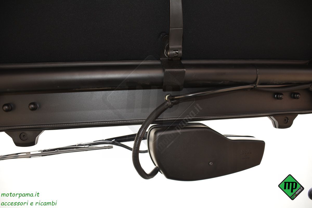 - Dettaglio vetro anteriore: Il parabrezza è realizzato in vetro di sicurezza temprato laminato, caratterizzato dalla funzione di inclinazione in due posizioni, assistita da due pompanti idraulici. Fissato al tettuccio di protezione con un sistema di bloccaggio in metallo, si blocca in due posizioni per favorire l'ingresso dell'aria.