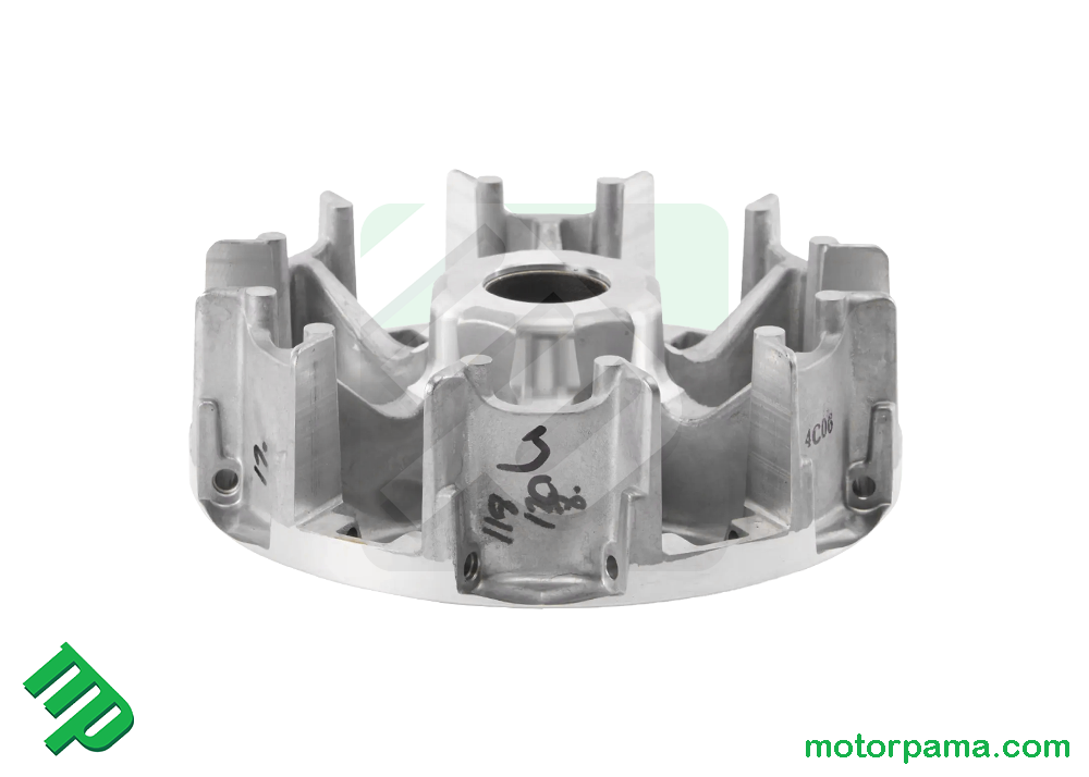 Semipuleggia fissa su trasmissione variatore posteriore quad atv Can Am Renegade Outlander tutte le cilindrate. Ricambio originale già completo di cuscinetto e di pattino scorri puleggia interno. BRP 420280178 COD 1146