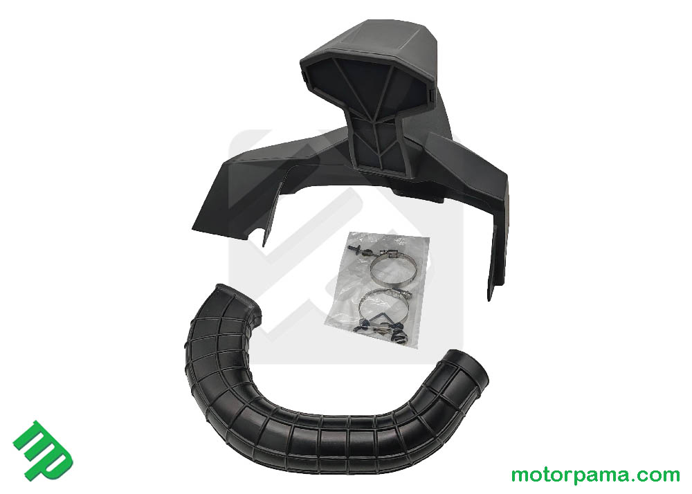 Questo kit completo comprende una presa di aspirazione estesa e nuovi condotti di aspirazione/scarico per il CVT integrati nel capolino davanti al manubrio.