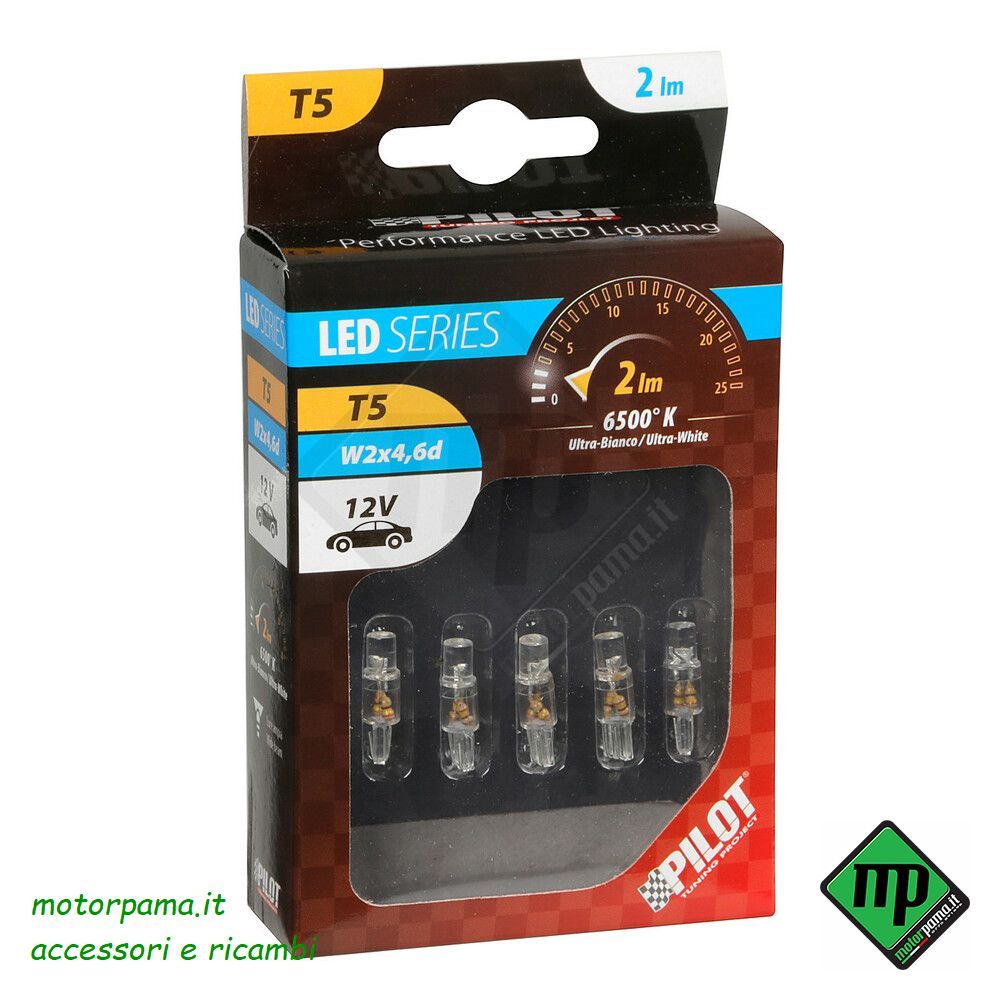 12V Kit Lampade cruscotto 1 Led - (T5) - W2x4,6d - 5 pz - Scatola - Bianco