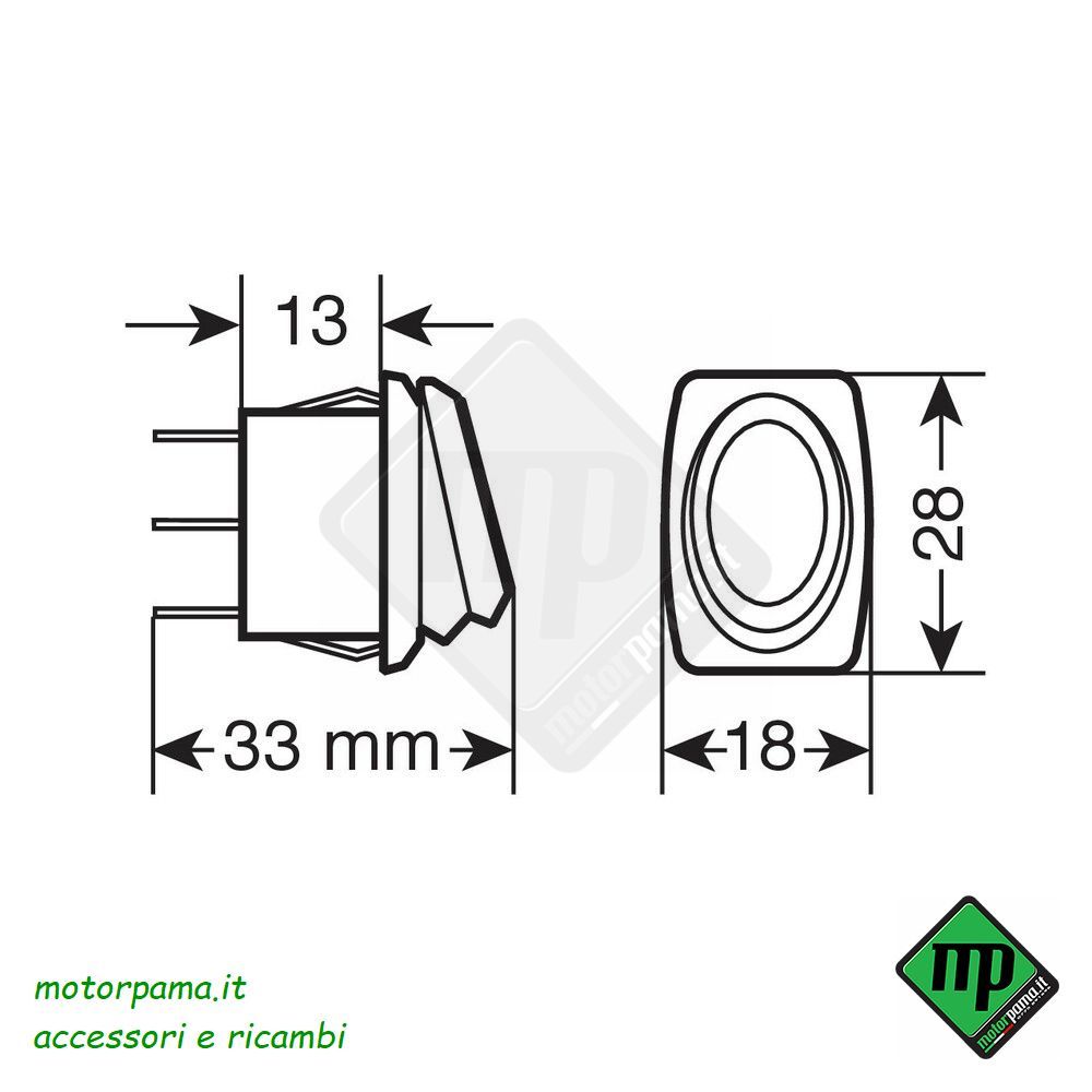 10A max. Led a due funzioni: sempre acceso o quando attivato. Impermeabile IP65. Dimensioni incasso 23x12 mm.