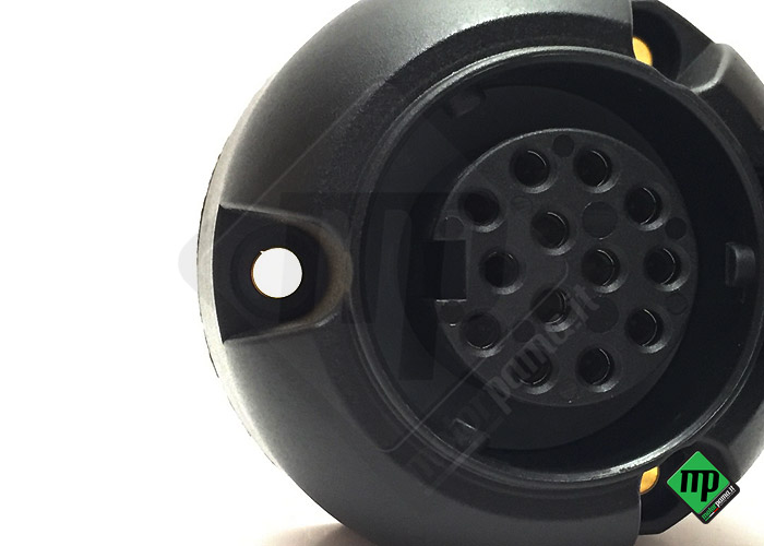 Presa a 13 poli con guarnizioni e viti montaggio per il carrello trasporto. Il prodotto è stato da noi installato su rimorchio Cresci rimorchi e Umbra rimorchi.