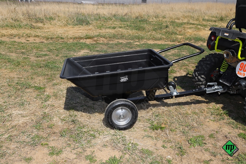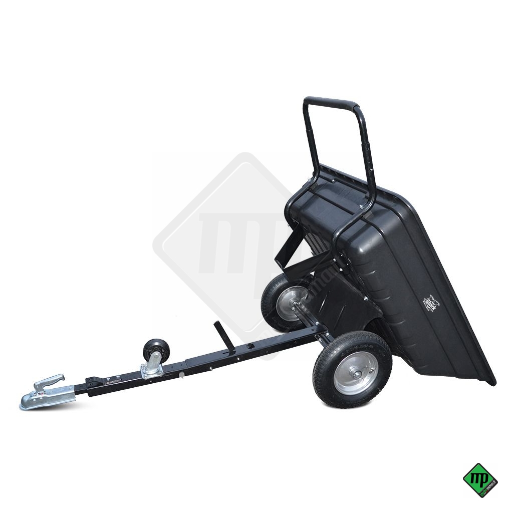 1) Il rimorchio veramente multifunzionale può essere trainato dietro l'ATV, il trattore da giardino o il trattorino con un dispositivo di accoppiamento ISO 50 standard.