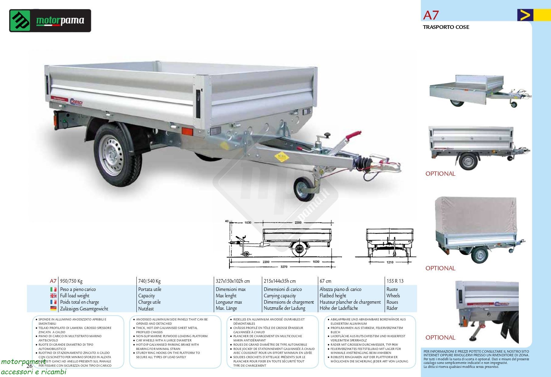 | Portata utile | 740 Kg |