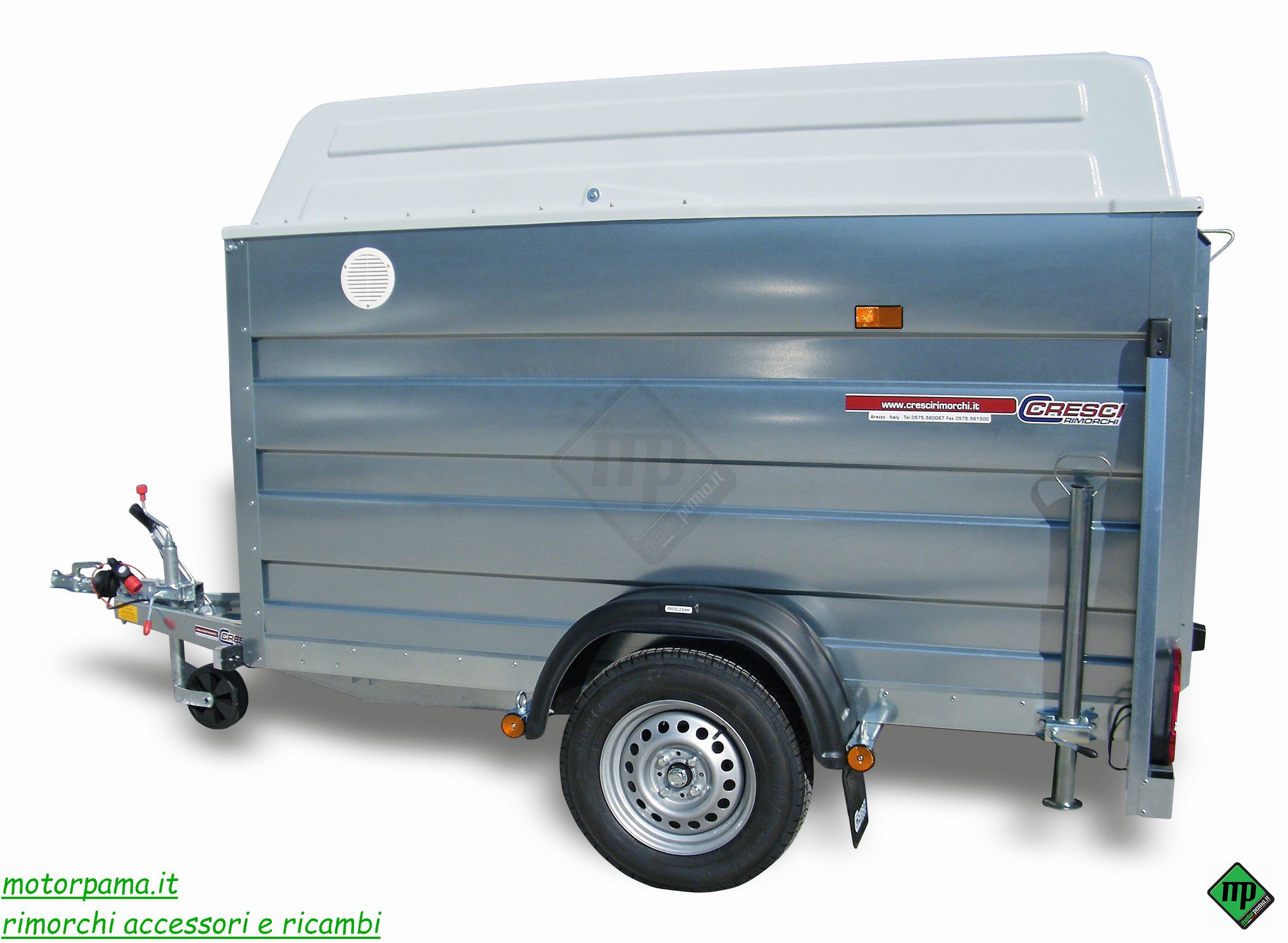 Carrello PT6F Cresci: Comodo, pratico, affidabile e resistente rimorchio con pedana / rampa di salita e copertura di protezione adatto al multiuso e al trasporto di: quad, scooter, moto, motocicli, moto cross, tagliaerba, ed altri mezzi. PRINCIPALI CARATTERISTICHE • freno a repulsione meccanica con sblocco autoreverse per retromarcia • sospensione a barra di torsione su gomma a ruote indipendenti • piano di carico in multistrato marino antiscivolo • telaio profilato di lamiera grosso spessore zincata a caldo • ruote di grande diametro di tipo automobilistico • impianto luci a nuova normativa comprensivo di retromarcia • ruotino di stazionamento zincato a caldo con cuscinetto per minimo sforzo in alzata • robusti ganci ad anello per fissare con sicurezza ogni tipo di carico Lunghezza max 366 cm Larghezza max 178 cm Altezza 185 cm Dimensioni utili di carico 226 x 130 x 143 cm Altezza sponde 112 cm Altezza piano di carico 38 cm Ruote 155R13 Peso a pieno carico Seleziona la portata per scoprirlo Peso a vuoto Seleziona la portata per scoprirlo Portata utile Seleziona la portata per scoprirlo