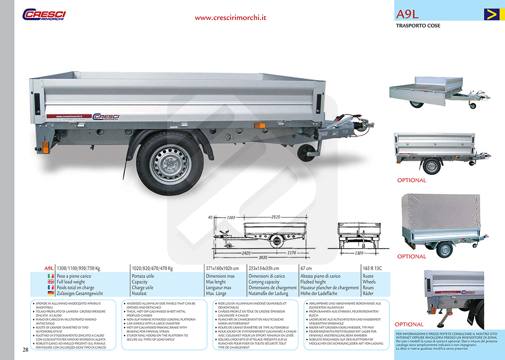 | Peso a pieno carico | 750 kg |